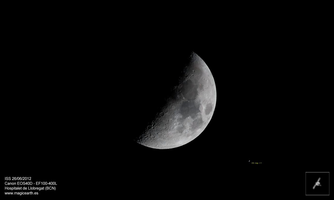 Mercè, el truco de las dos cámaras está en tener bien centradas ambas ópticas, dejas disparar la Canon y te centras en lo más difícil, en seguir la ISS con la DMK, la otra imagen sale sola.