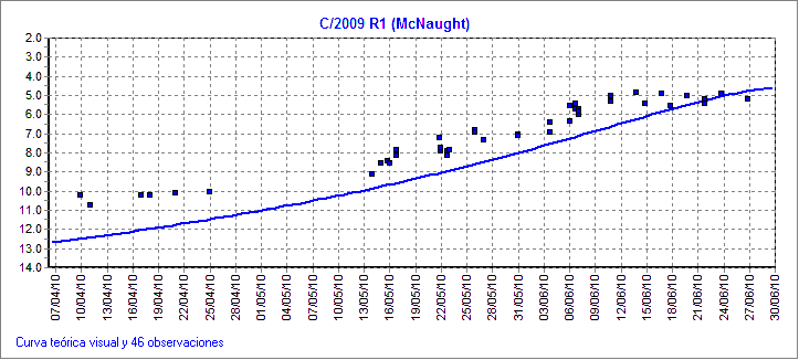 curva de luminosidad visual, actualizada desde Cometas-Obs directamente
