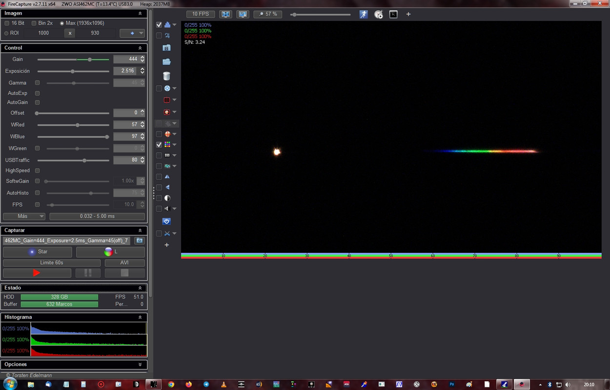3.- Imagino que FireCapture te servirá, pero aquí no se toman vídeos sino imágenes en formato fts. Cualquier software de adquisición es válido siempre que respete el formato astronómico fts.