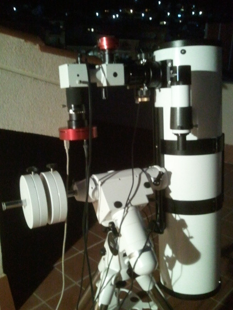 (Newton 200 f/4.7 sobre HEQ5 Syntrek con el DADOS preparado para observar. ¡Menuda palanca que hace!