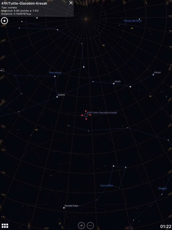 Buscando esta noche al cometa entro en Stellarium y me da una posición cercana a 5 Dra, mientras que SkySafari da otra posición en este caso pegado a 11 Dra. ¿Esto es habitual?.