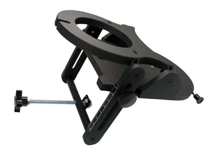 Una wedge o cuña ecuatorial es un accesorio que se coloca entre el trípode y el telescopio para convertir una montura Alt-Az en una montura ecuatorial.