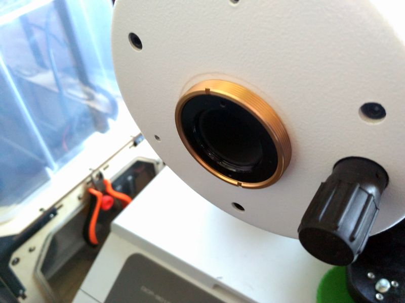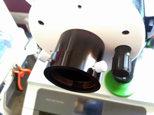 Pese a que por la descripción parece una única pieza, realmente lo que viene en la caja es un porta ocular de 2" y rosca SC (creo que es SC) y una anilla adaptadora de la rosca usada en estos tubos (unos 45mm) a rosca SC.