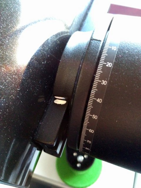 Ya puestos he medido la abertura con el método de la linterna y me sale de 124 mm con una obstrucción de 46 mm igual en 1,25" que en 2". En el foro mencionado todo el mundo medía 118 mm, así que parece que el SW moderno tiene más abertura que el antiguo.