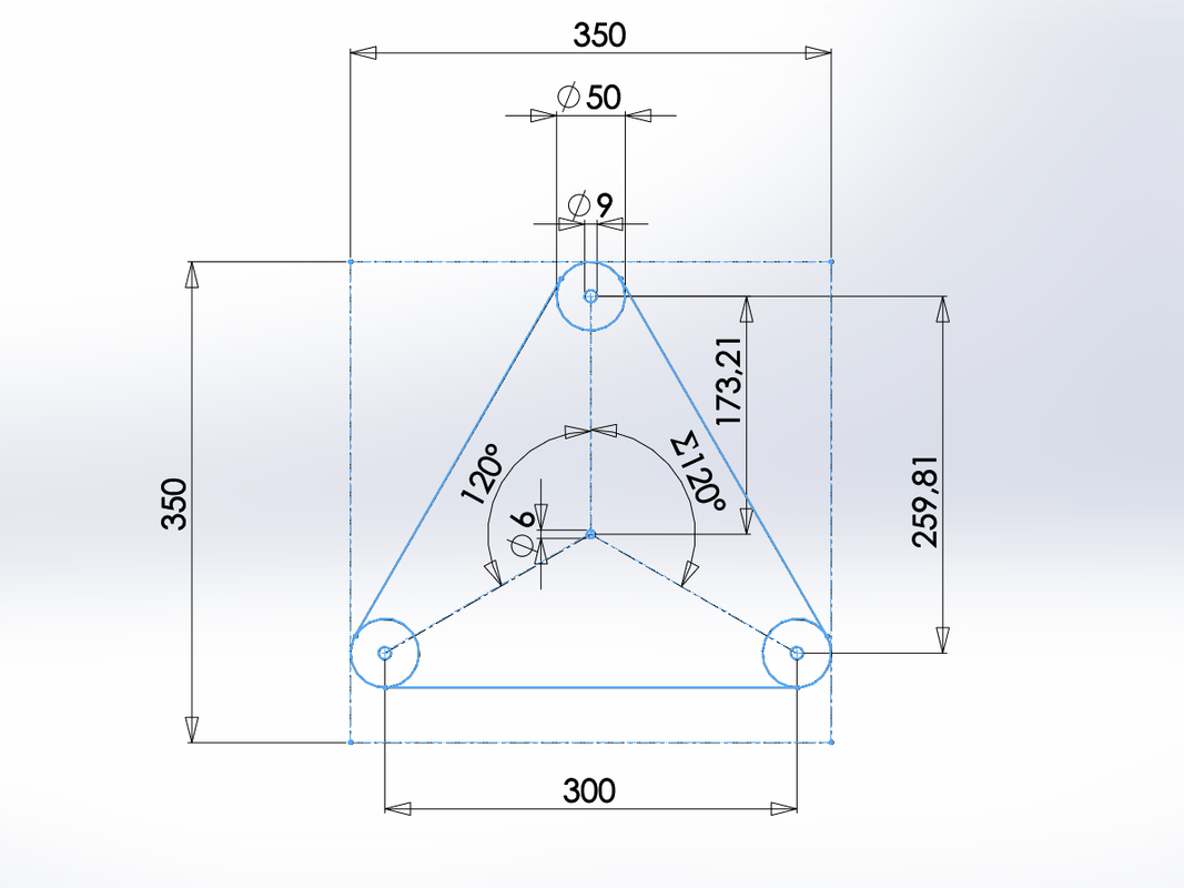 un taladro central y tres exteriores separados 120°