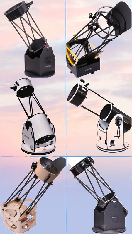 Telescopios. tamaño físico: volumen y envergadura 250mm 300mm y Dobson 12" y más