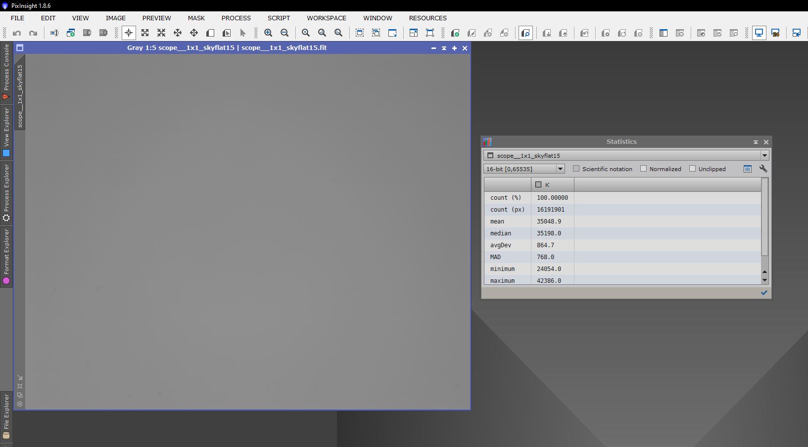 Ves mi flat de 35.000? a que parece quemado o saturado? está sin estirar ni hacer ScreenTransferFunction, tal cual sale de la ccd. Pues ese flat es el que calibra bien mis filtros LRGB.