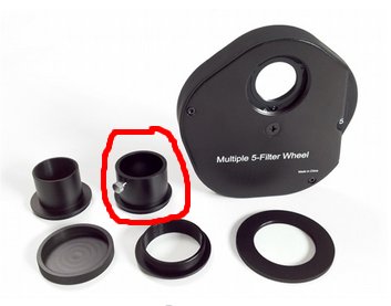 hola, tengo una duda sobre si la pieza que trae mi rueda de filtros es o no es rosca T2, es la que señalo en la foto, la que hace de portaocular, la verdad es que no me gusta como sujeta los oculares y me gustaria cambiarla si fuera posible. no tengo claro si la T2 es la rosca de arriba (portaocular) o la de abajo, por donde entra al enfocador)