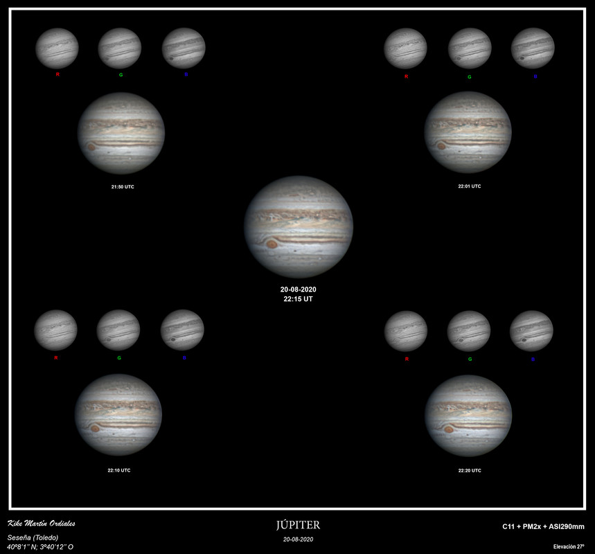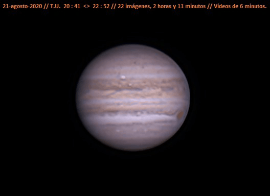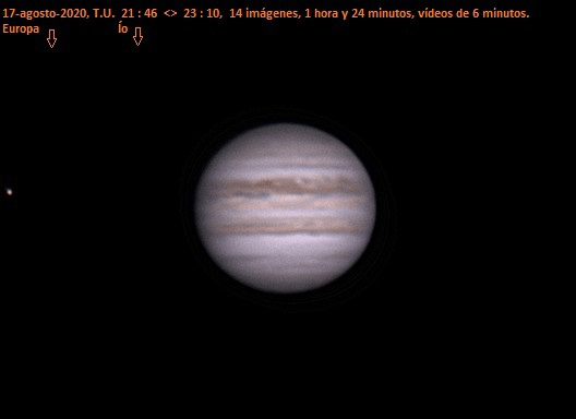 Esto está animado, señores. Ahí mi sombrita de Io, 21:41-22:00 UT ----2020/08/09. Antes de nada, añadir que los bordes están desenfocados he estirado bastante y tuve que hacer deconvolución para sacarle chicha, y claro me generó un artefacto en los bordes, de ahí que recurrí a un desenfoque gaussiano, y claro esta vez me pasé y me pasé tb con los bordes... pido disculpas por ello.