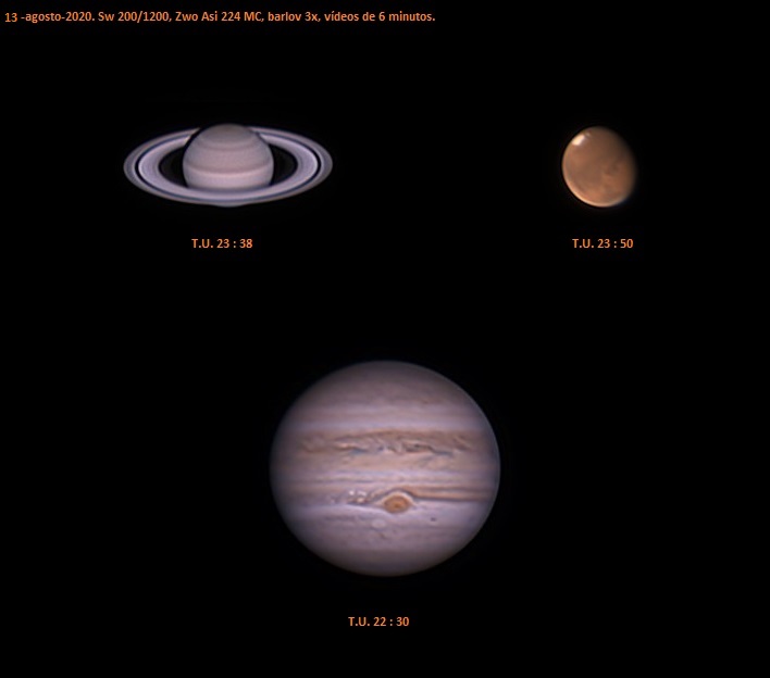 Que pasada de fotos que estáis poniendo, yo sigo peleando para sacar algo decente en comparación a lo que veo por aquí esta es del 22 de agosto, aunque por no haber casi luna tenía previsto hacer cielo profundo, quería estrenar la nueva Lente de Barlow 3xED. GSO 1.25" que me ha costado 80 euros, la que tenia era una celestron de 30, así que esperaba una mejora, hice el colimado in situ con todo montado, realice el test de estrella y vi los círculos concentricos y la sombra del secundario perfectamente en el centro de los aritos a si que tengo que creer que la colimacion estaba bien, después, puse el fire capture para capturar en ser y sin debayer cuando ponía el debayer para ver el color salia un poco raro, así que quite el auto histograma y regule todo, ganancia, exposición, brillo, hasta que me ofreciera en pantalla la mejor vista posible, que veía al grabar un satélite, este lo aproveche para enfocar con el hasta verlo lo mas puntual posible, durante la grabación lo veía pero luego en el procesado no me ha salido, grabe un vídeo de 3 minutos cuando el planeta estaba en el punto mas alto que iba a alcanzar, con el debayer quitado, y el resultado no es como los vuestros, tengo que decir que hacia viento, pero en pantalla no me pareció que temblaba demasiado, el vídeo tenia 17430 frames capturados con un roi de ROI=700x626, a 96 fps, mas abajo pondré el bloc de notas del firecapture.