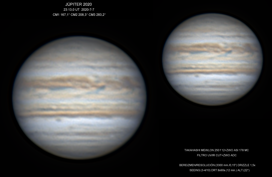 Carl menudo pedazo de Júpiter, no esta nada mal, pero me parece que tu configuración esta al limite máximo de ampliación, te exige un seeing especialmente bueno y más altura, que desgraciadamente no tendremos esta oposición.