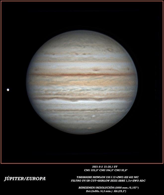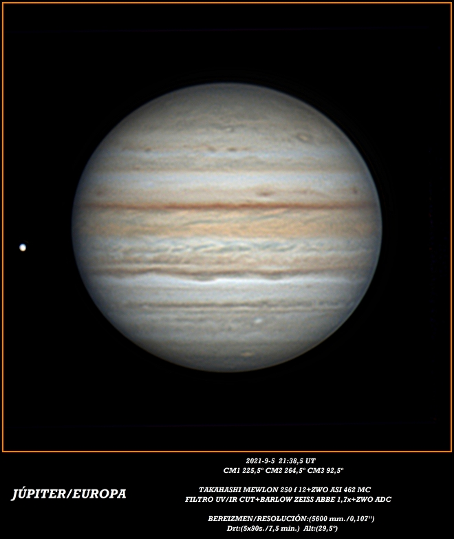 Día 17-09-2021 (junto a Calisto y su sombra, además parece que se aprecian ciertos detalles en la superficie del satélite)