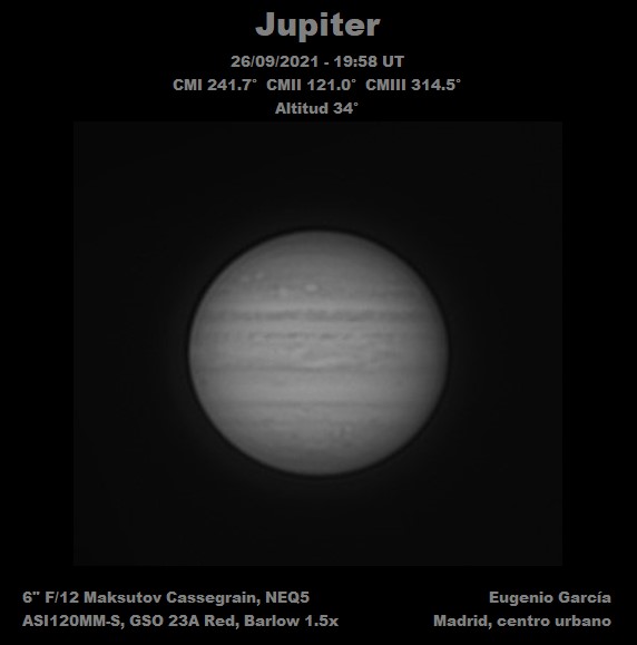 Yo hace un par de noches me peleé con las nubes altas para sacar estas tomas de Júpiter. Muy mala transparencia aunque el seeing era algo mejor de lo habitual estando en 6/10.