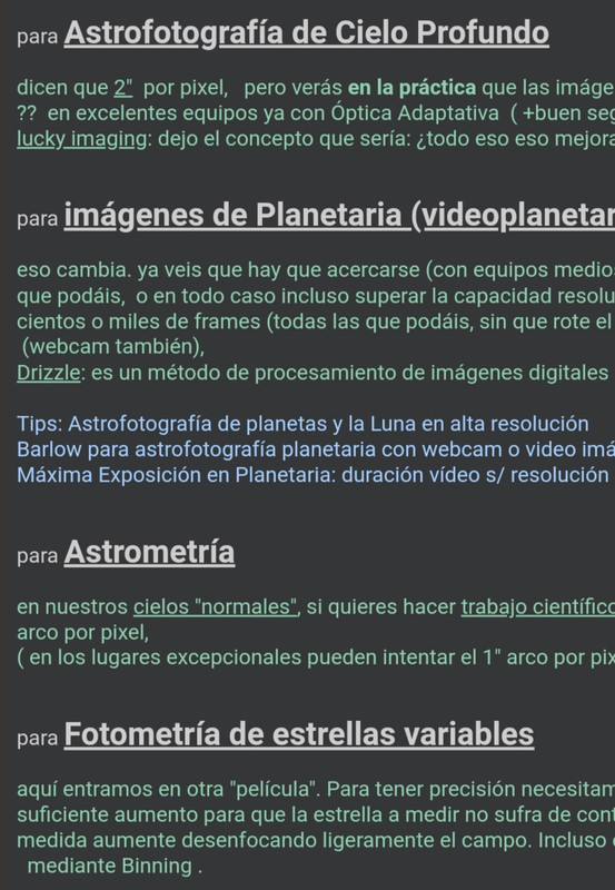 Explicado: Cálculo resolución arcseg/pix chip, focal, difracción, seeing, Objeto