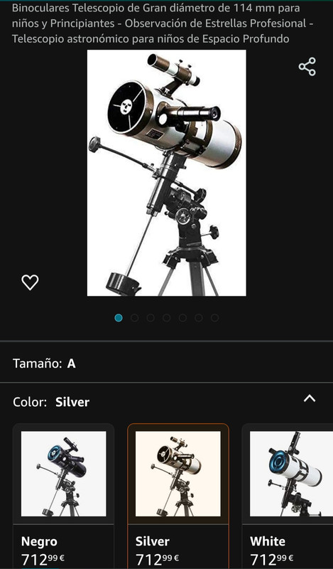 En el mismo título aparecen: gran telescopio -114 mm de diámetro-, para niños y principiantes, observador de estrellas profesional y telescopio para niños de Cielo profundo.