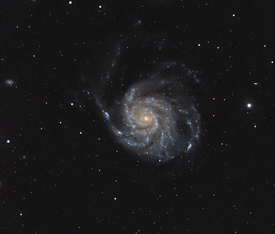 He podido añadir un par de sesiones mas a esta M101. Han sido un par de buenas madrugadas y creo que la imagen ha ganado un poco. Cuelgo la nueva imagen aquí y también en el mensaje inicial para compararlas.