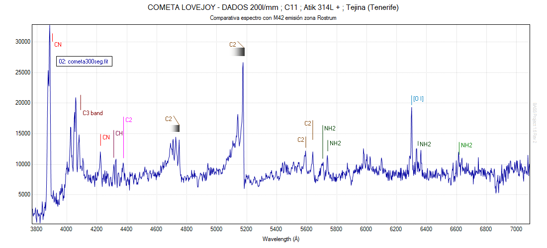 En realidad es mi primer espectro de cometa, y aún no he podido localizar mucha información sobre las bandas observables.