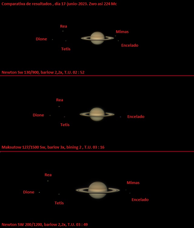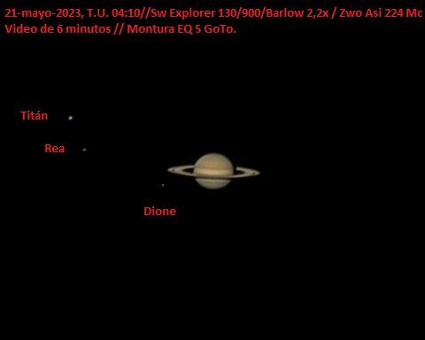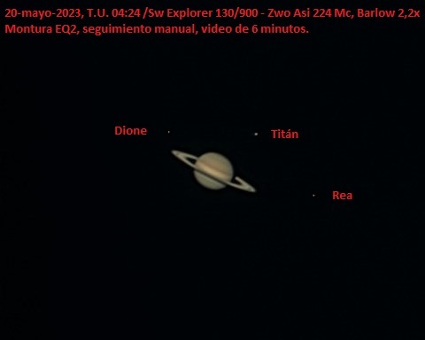 Muy buen estreno , podría haber salido Tethys que es algo mas brillante que Dione pero seguramente estaba por detrás de Saturno en las dos fotos.