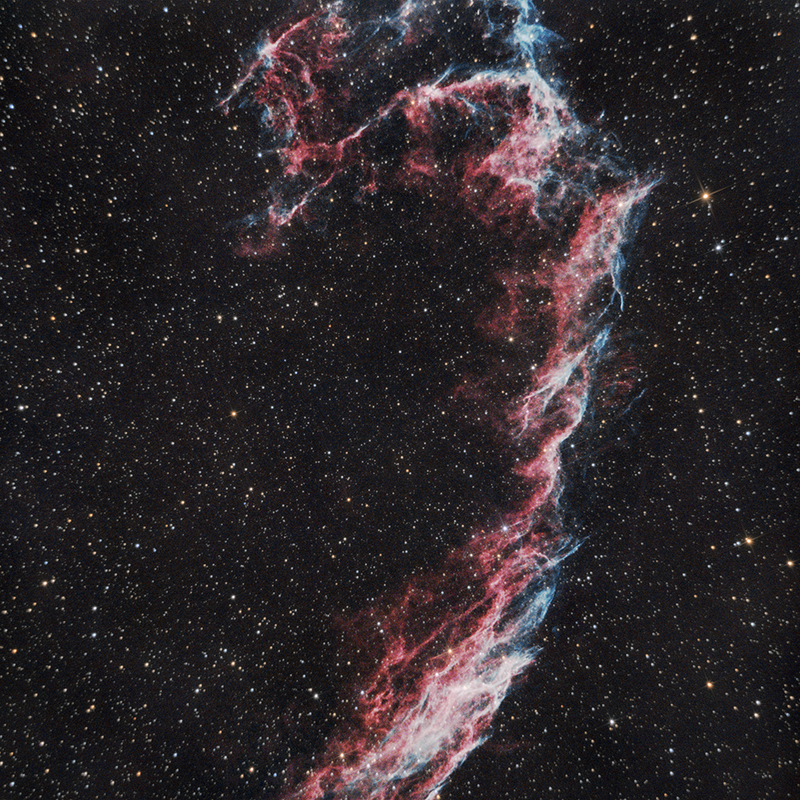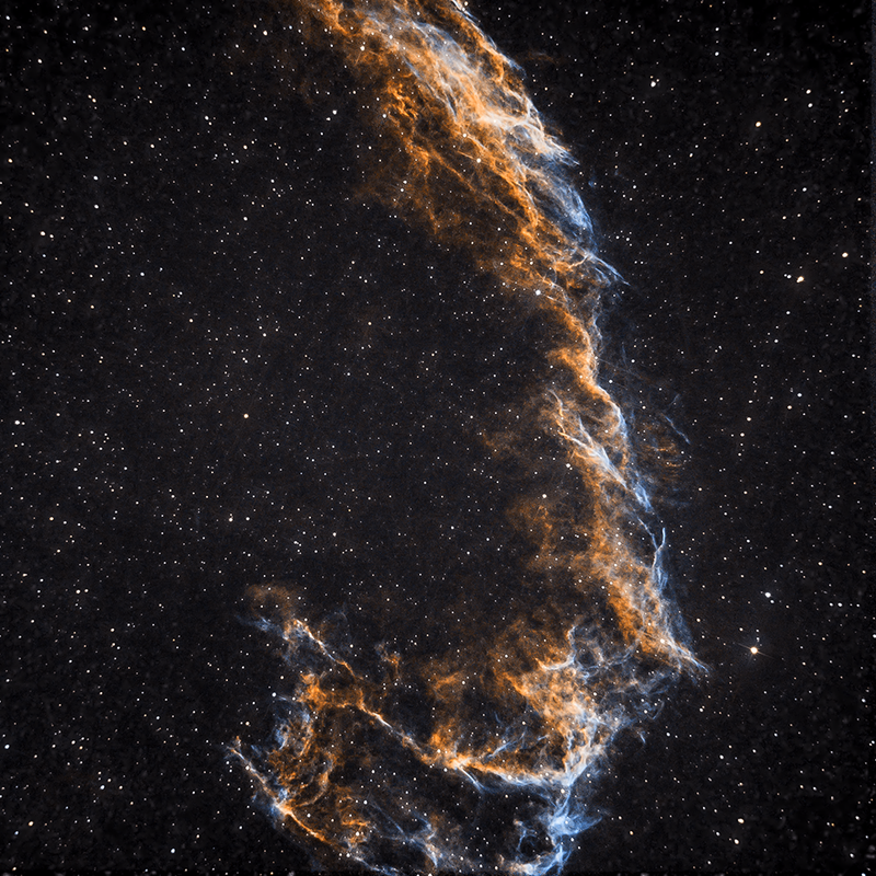 Tras un tiempo de inactividad en el foro por vacaciones vuelvo con algunas fotos que compartir. He podido irme unos días a un cielo Bortle 3 y probar a tirar con una configuración de equipo un tanto distinta. Os comparto mi nebulosa del velo con solo 60 minutos de exposición (20 tomas de 180 segundos) y un tubo newton 150/750 que me dejaron combinado con mi SV605CC (IMX533) y únicamente con un filtro UV/IR cut. Sin darks ni flats/bias, cámara a -7º. El color es directamente el que me ha salido en el apilado, pensaba que me saldría con tonos rojizos y azulados pero me ha salido así tipo paleta Hubble... tengo que investigar el por qué.
