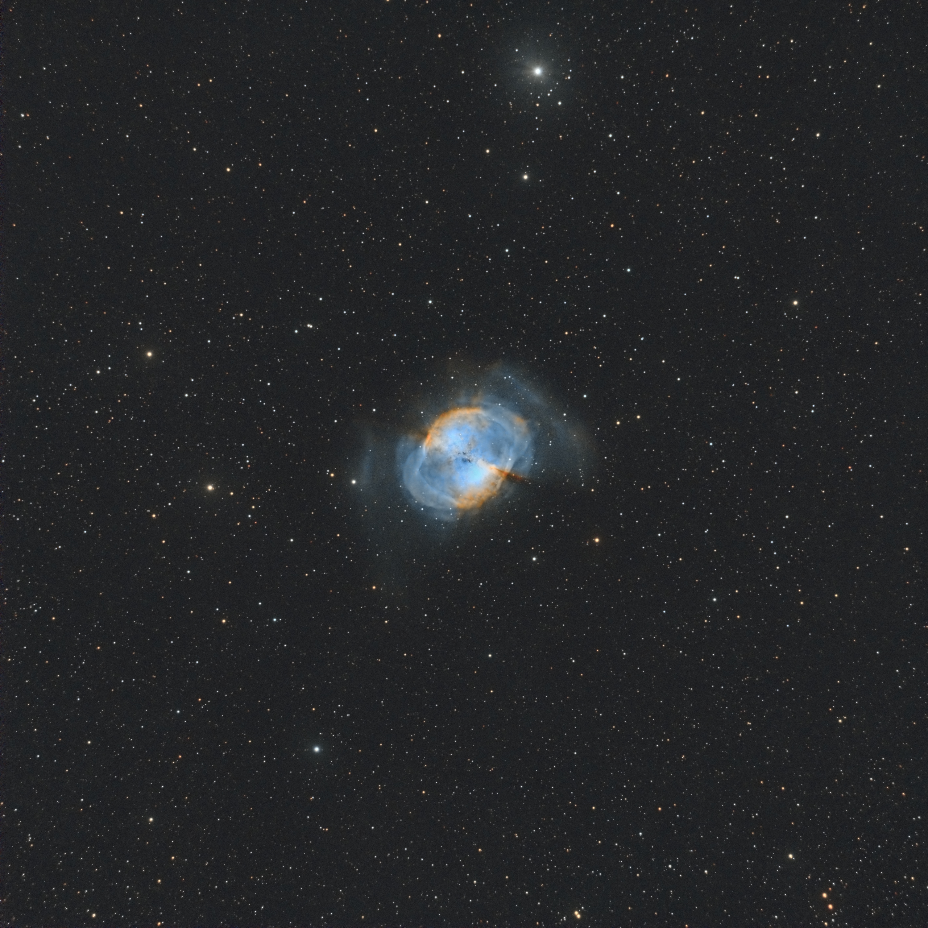 Gracias Lukfer por tu aporte. Todas las variaciones muestran pequeñas diferencias y forma de presentar la nebulosa interesantes. La tuya diría que es la que mas muestra las "alas", o al menos la que las muestra mas brillantes. O esa es la impresión que tengo yo.