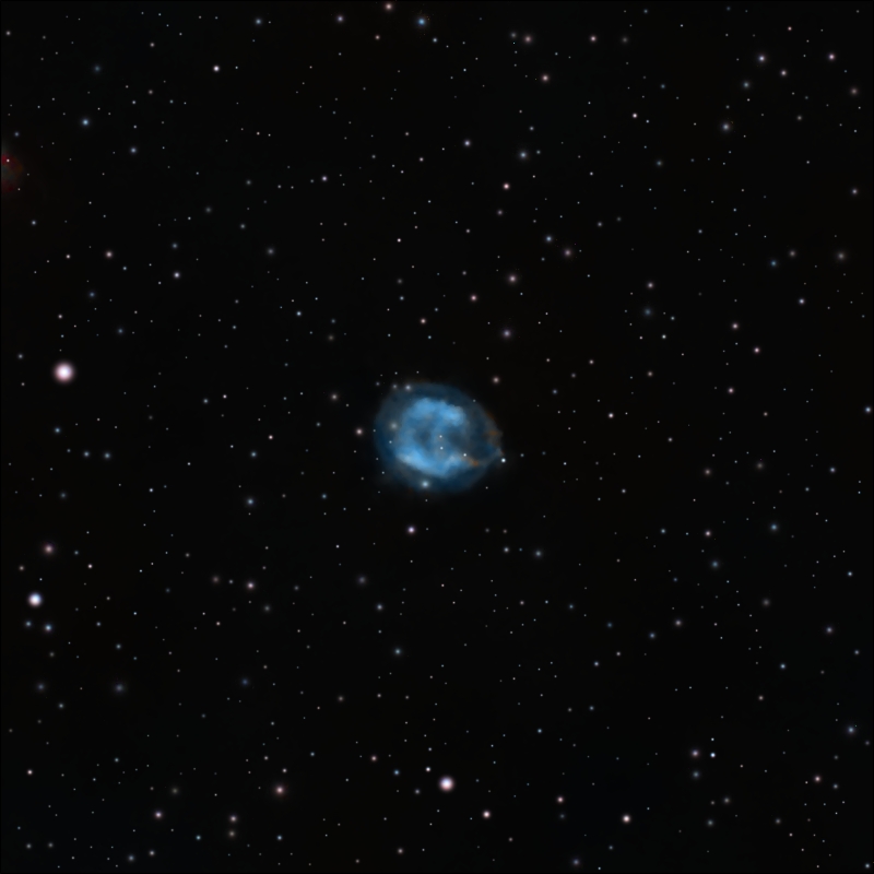 Buenas. Subo foto de un objeto poco habitual, se trata de la nebulosa planetaria IC1295 en la constelación de Scutum. Ya sé que no es tan espectacular como otros objetos más llamativos, pero como dispongo de una visión limitada del cielo desde mi domicilio, pues tengo que adaptarme (como suele decir el amigo José Antonio, lo que hay juega). Son 2520 tomas de 10'' con el C 9.25 a F 6.3 y la cámara ZWO533MC con el filtro L-eNhance.