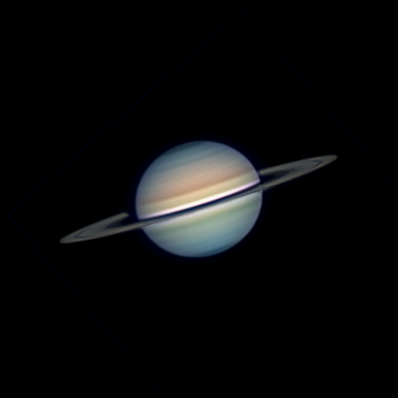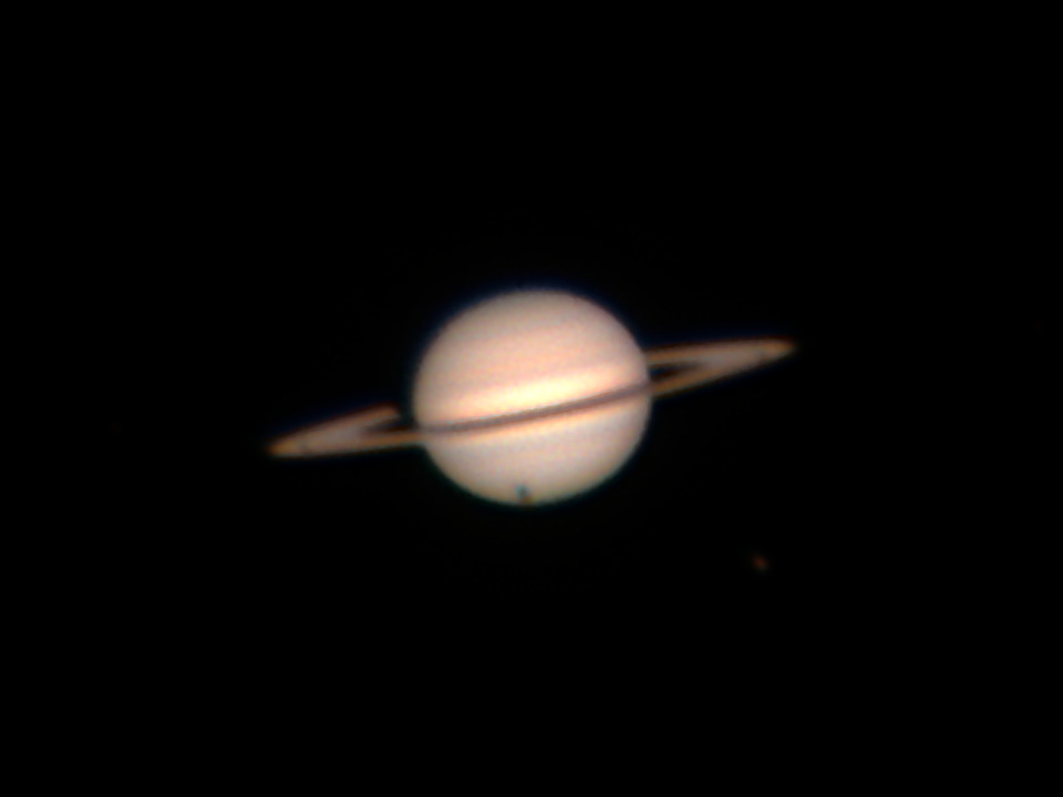 Estos años que tenemos los anillos de Saturno tan poco favorables pueden observarse algunos tránsitos de las principales lunas sobre el planeta. El paso de la sombra de Titán es el más fácil de detectar y el más llamativo, teniendo en cuenta el tamaño relativo de la sombra en el disco de Saturno. Resultó fácil de ver al ocular poniendo aumentos.