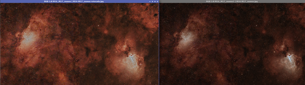 También veo demasiadas estrellas, se comen un poco las nebulosas.