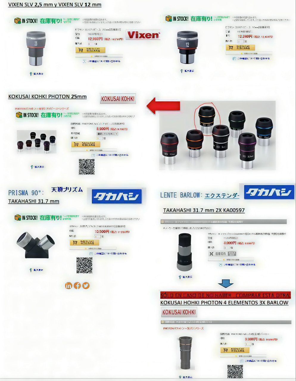 Precisamente ahí es donde voy a enviar a mi pareja. He estado mirando la página para que vaya a tiro hecho. Sabe japonés, pero de telescopios y oculares sabe mucho menos que yo, que ya es decir.