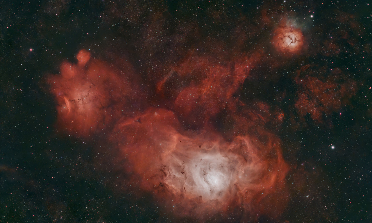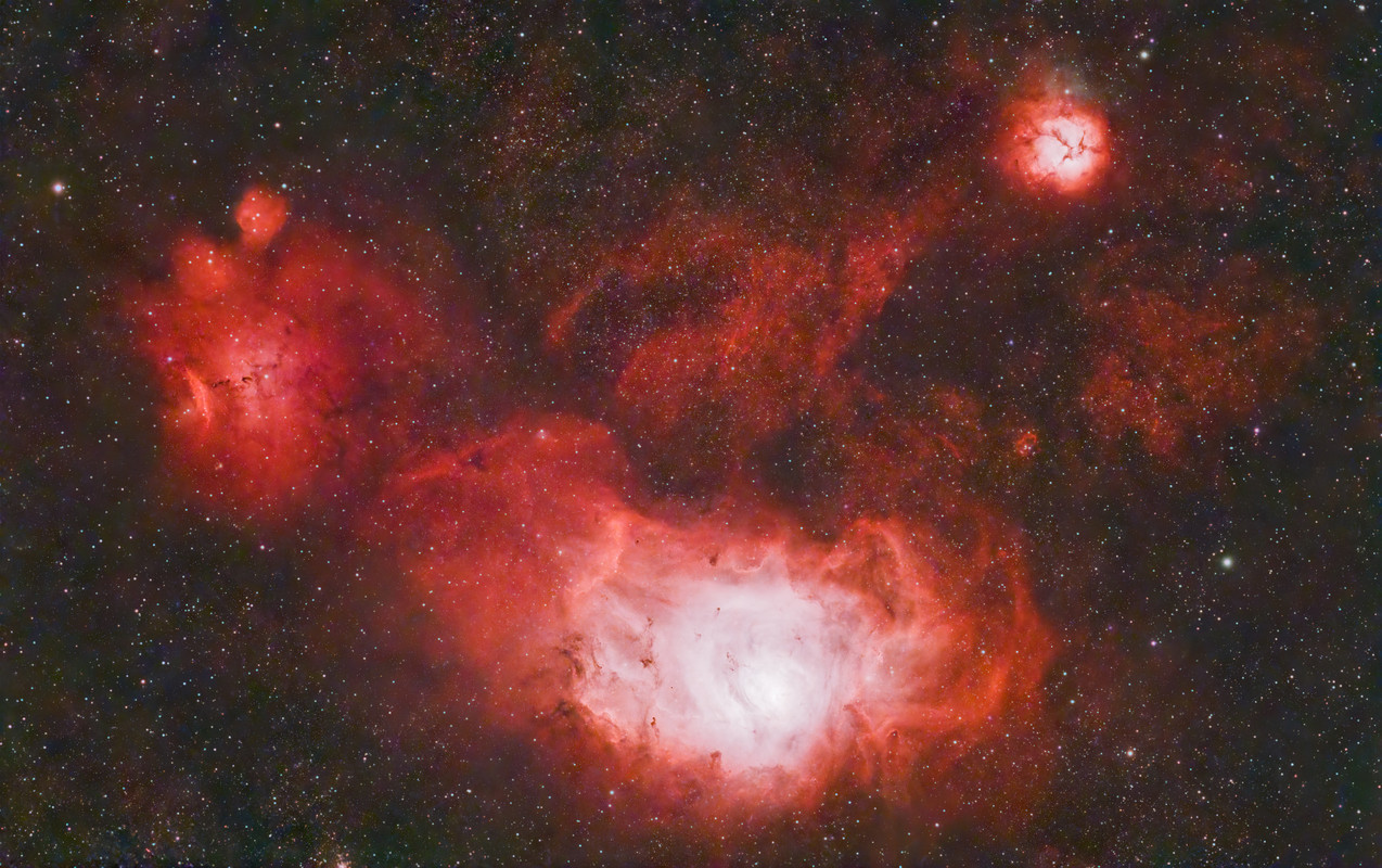 Desde luego que has captado señal a mansalva. Me gusta como se ve. Si que creo que las partes mas brillantes de M20 y M8 estan bastante saturadas y merecerian un estirado mas suave para mostrar los detalles en las zonas de mas brillo. Creo que para el siguiente revelado seria algo interesante. Me sorprende todo lo que sale con solo cuatro horas y media. Está muy bien.