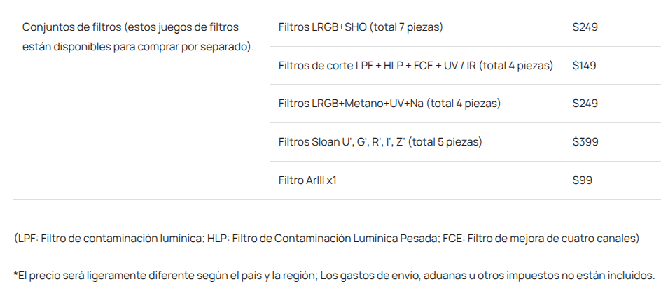 Respecto a lo de quedarse "atascado" en el ecosistema... no es tan relevante. Incluso suponiendo que los filtros no tuvieran reemplazo o que la rueda en si dejara de funcionar simplemente la acoplamos a una rueda de filtros estándar si hace falta dejandole una "ventana" del filtro interior abierta y listo. Como es tan ligera, la rueda incorporada no supondría problema de peso alguno para el tren óptico incluso en tal situación. En el peor de los casos es como cualquier IMX585M de las buenas que te viene pelada y te cuesta entre 800 a 850 € según el caso. Sin nada incluido.