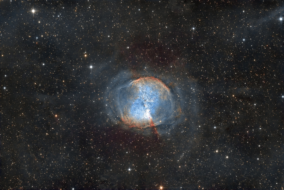 Otro detalle curioso son las espicas. Los SC no las producen. Parecen las de un reflector Newton. ¿Las estas creando con el software de procesado o con alguna otra técnica? Por cierto... ¿que software sueles usar para apilar y procesar? A modo de sugerencia, en mi opinión, creo que la nebulosa ganaría una pizca con algo menos de "afilado" en el procesado, pero es solo mi punto de vista.