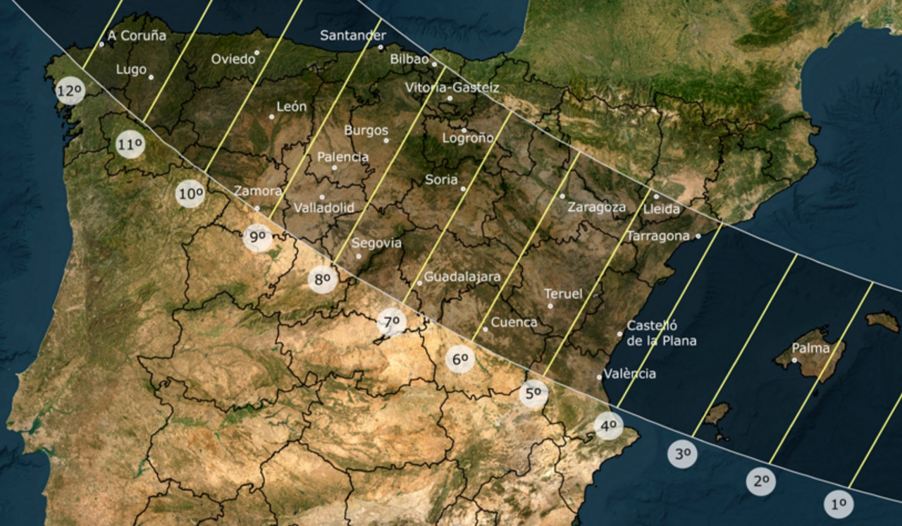 el paso del Eclipse sobre Península Ibérica: España, Baleares, Canarias