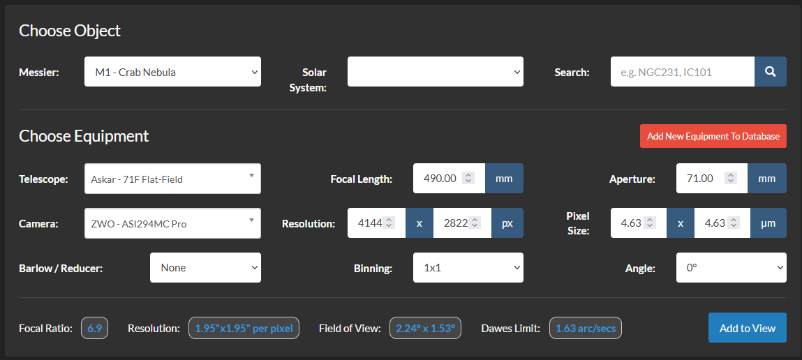 Necesito vuestra ayuda para entender si una cámara es adecuada para un determinado telescopio. Sé que existe AstronomyTools, que no solo permite ver el campo que podemos fotografiar sino que también indica si la cámara es "suitable", es decir, apta para el equipo. Sin embargo, lo que dice esta herramienta y lo que la gente hace en la práctica a menudo difiere bastante.