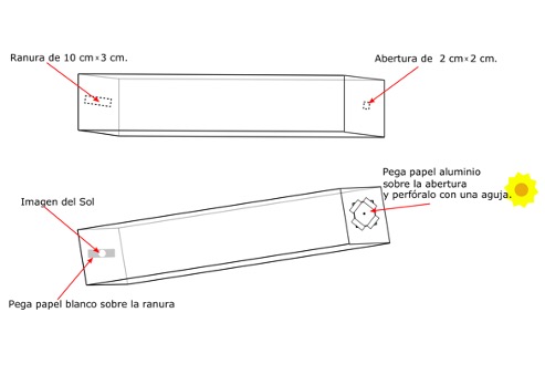 Hay que proteger con papel de aluminio los alrededores de la lente por si el haz se sale al irse moviendo el sol, que no queme el cartón en el que está montada. Conviene, efectivamente, tapar la zona para que no se pueda meter la mano.