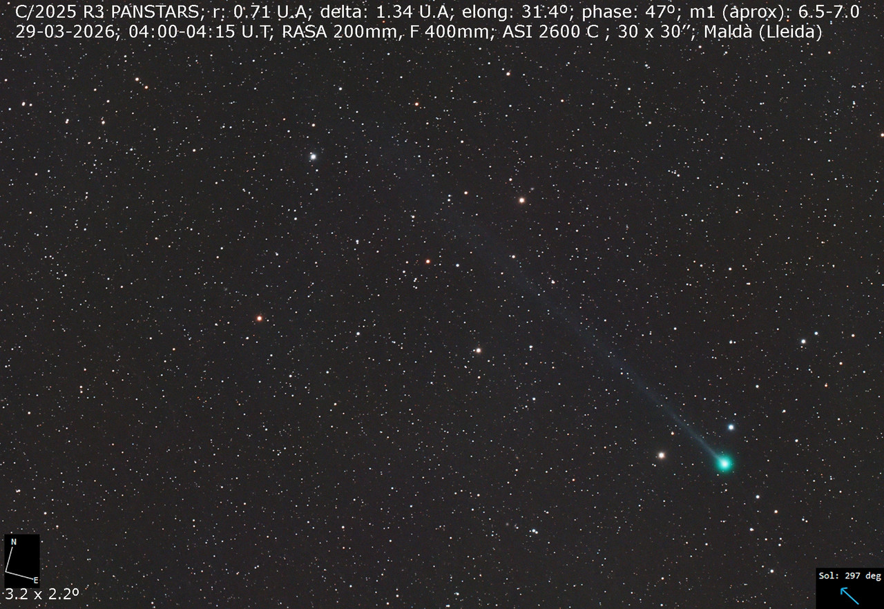 Unas imagenes del cometa C/2025 R3 realizadas esta madrugada (29 de Marzo)