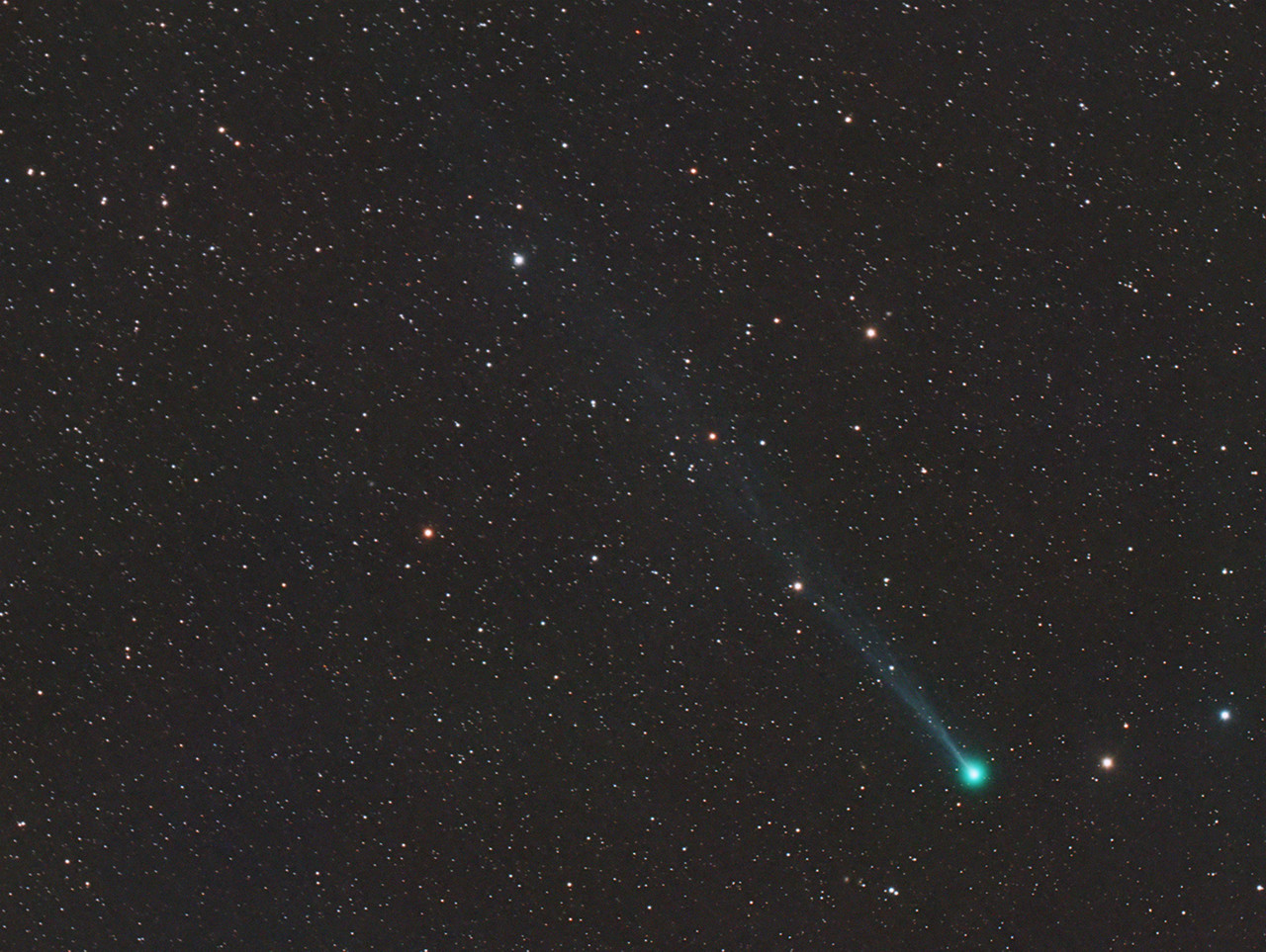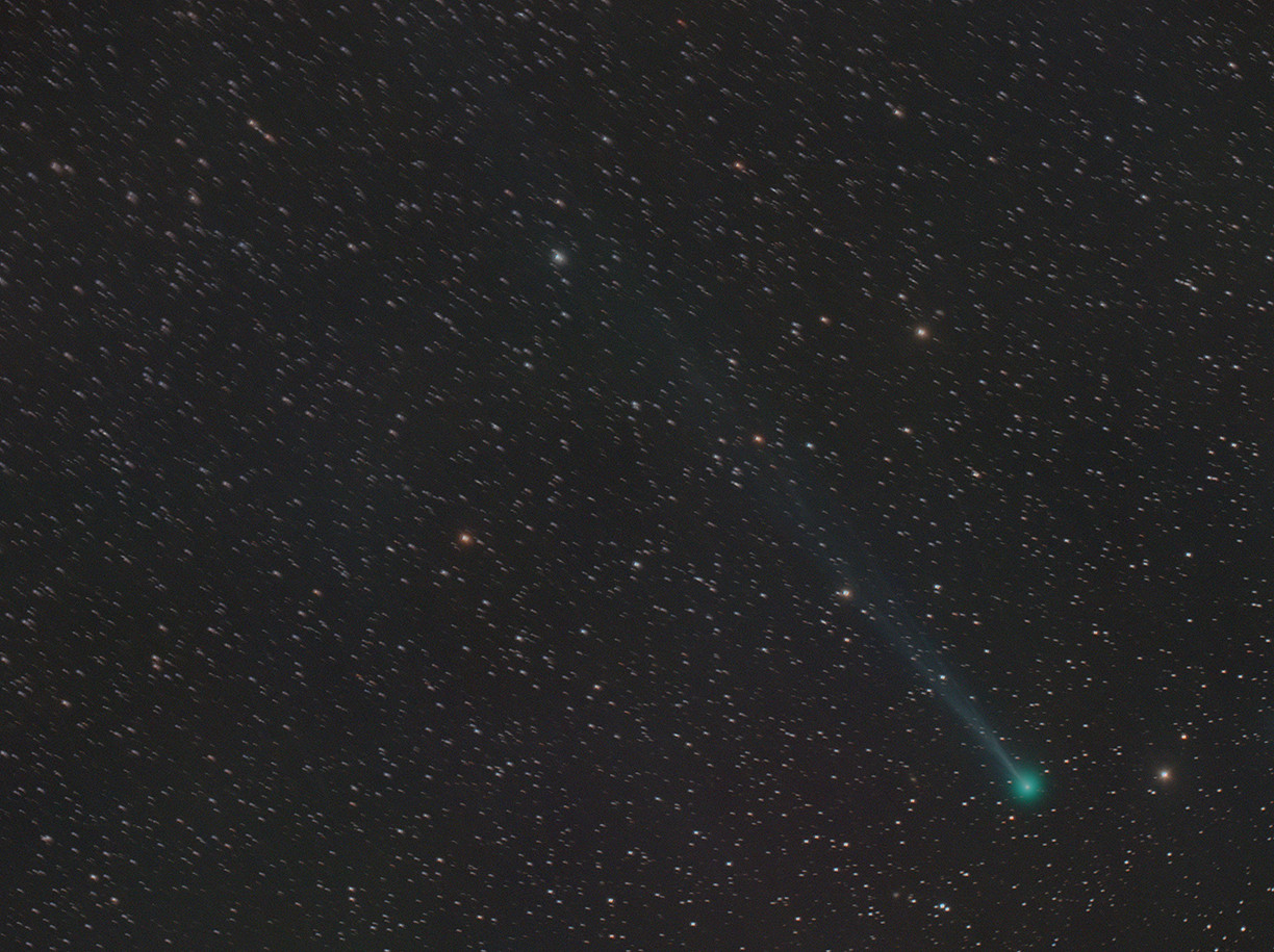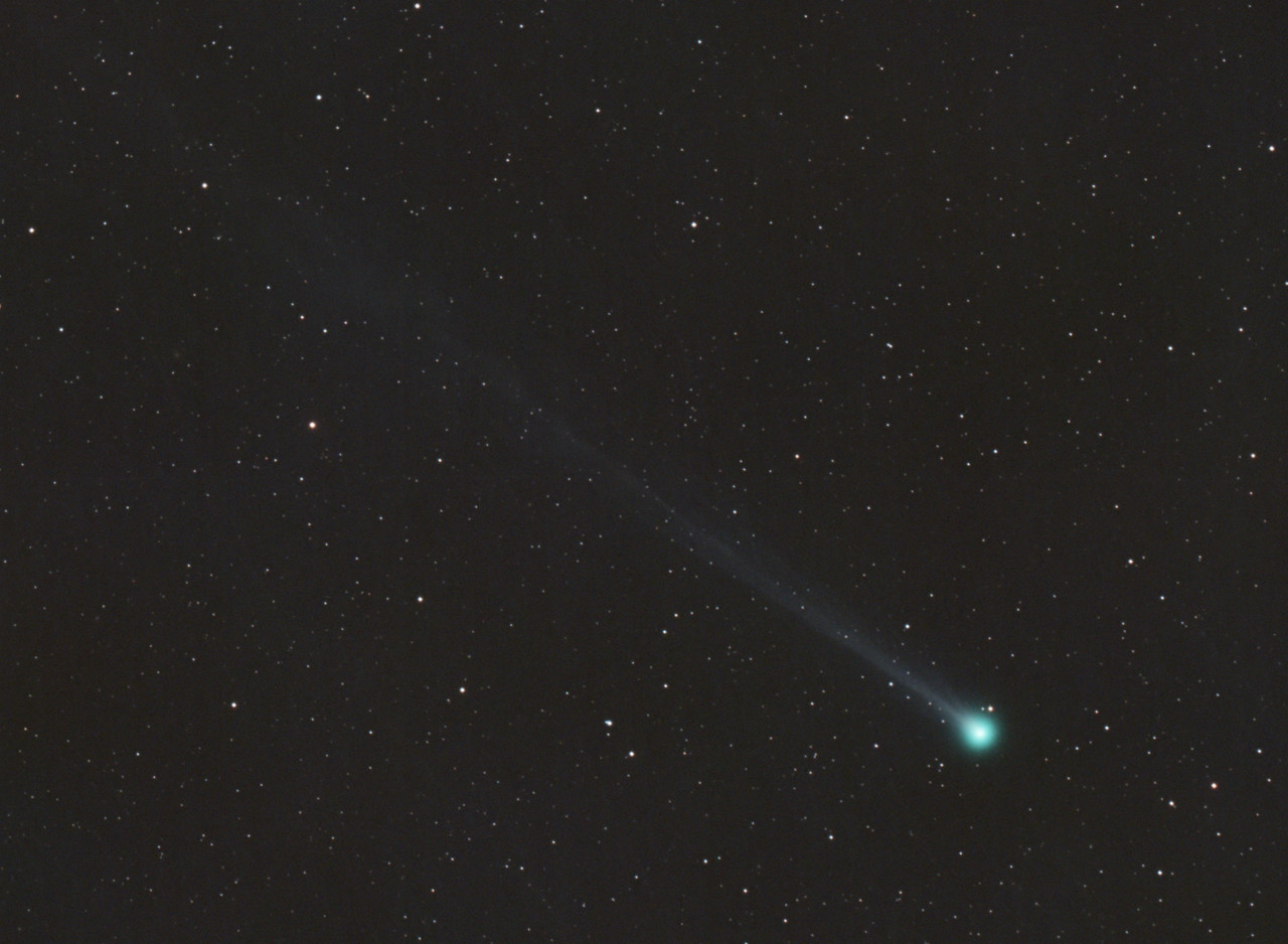 Se observa perfectamente la cola iónica de cerca de medio grado, se intuye un poco de estructura, tiene coma muy condensada de unos 6' de diámetro