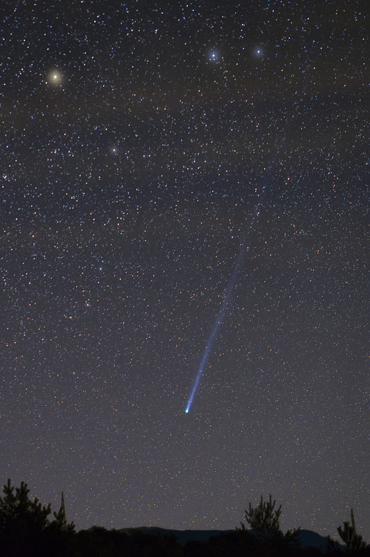 Esta pasada noche me pude desplazar a un cielo de montaña y el cometa lucía espectacular, visible a simple vista aunque con dificultad, claramente visible en los prismáticos 2 x 50 y tenía una larga cola con los 20 x 80 que apenas cabía en el campo.
