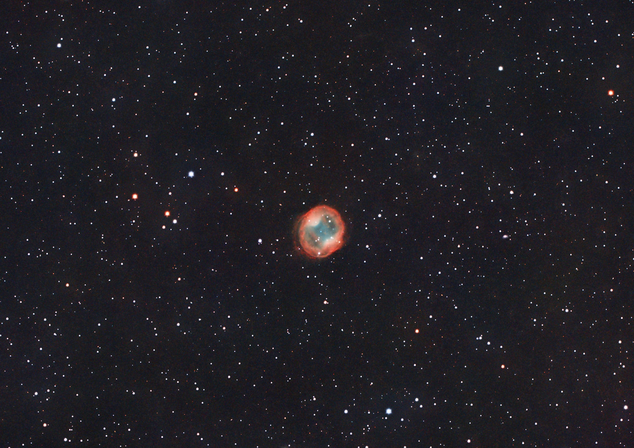 Comparto una imagen de esta nebulosa planetaria con un brillo superficial bastante bajo pero con un tamaño aparente bastante grande. realizada en 2 sesiones mientras esperaba cometas.