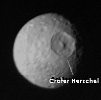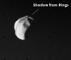 sombra del anillo F sobre Epimetheus  //  cráter Herschel en en el satélite Mimas