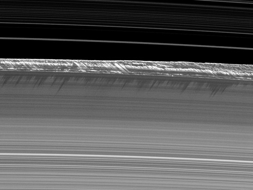 imagen de la compleja perturbación por la sonda Cassini,  24 diciembre 2010, orbitando a 1.8 mill de km.