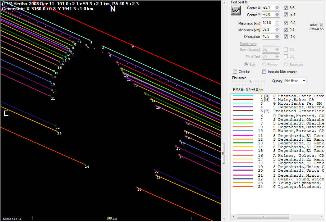 Por otro lado me gustaría que viérais uno de los datos que se puede conseguir tras un buen seguimiento de la ocultación por parte de un nutrido grupo de sufridos ocultacioneros: