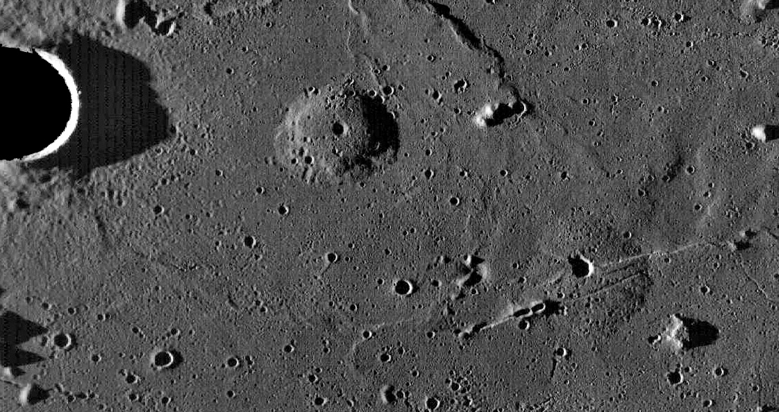 en alta ampliación, el perfil limbar de la Luna permite inferir la tridimensionalidad real de las formaciones.