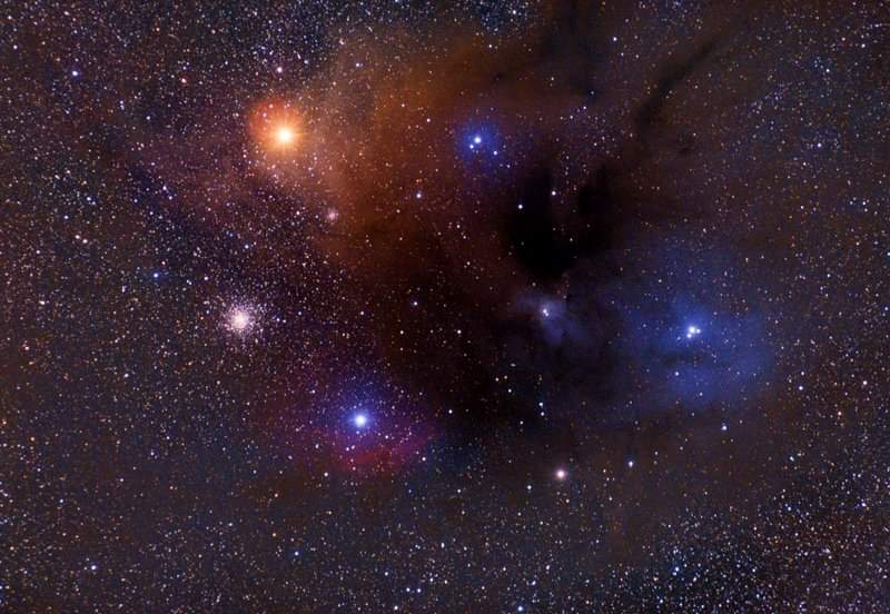 Una región celeste espectacular, entre de alfa Scorpii y Rho Ophiuchi - conocida como "la paleta del cielo" / imagen de gran campo